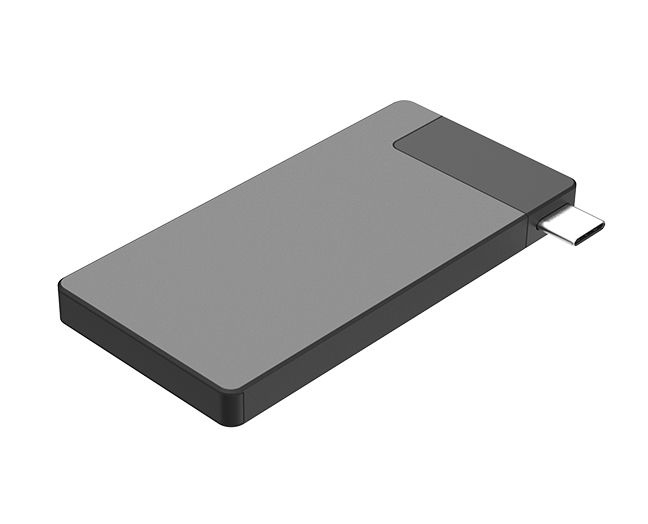 1. USB-C输入口,设计接纳隐藏式公头,通过顶部按键推出Type-C头,即可插上适配的智能装备使用;